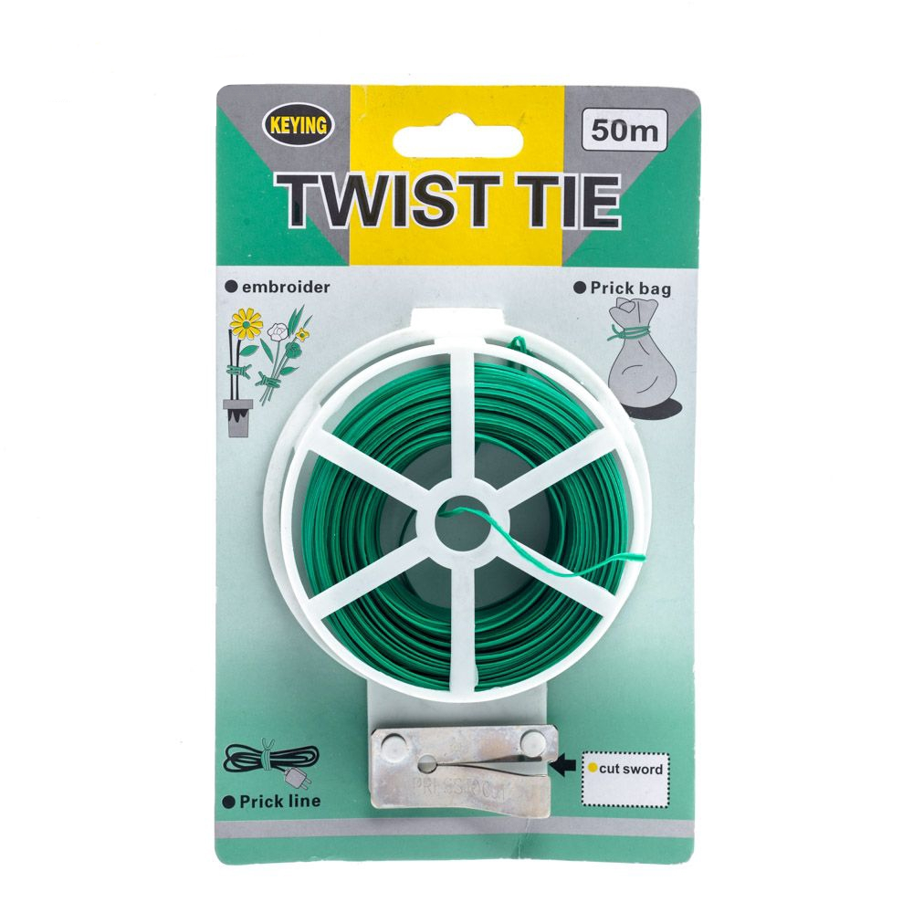 Alambre entutorado 50m, sistema de entutorado ideal para permitir a la planta crecer de una manera sana, sin estrangularla.Gran flexibilidad, con herramienta de corte integrada. Acero plastificado. Medida: 50m